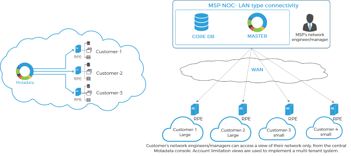 Automated discovery — when a new client's infrastructure is connected, automated discovery identifies devices, maps dependencies, and applies monitoring policies without manual configuration