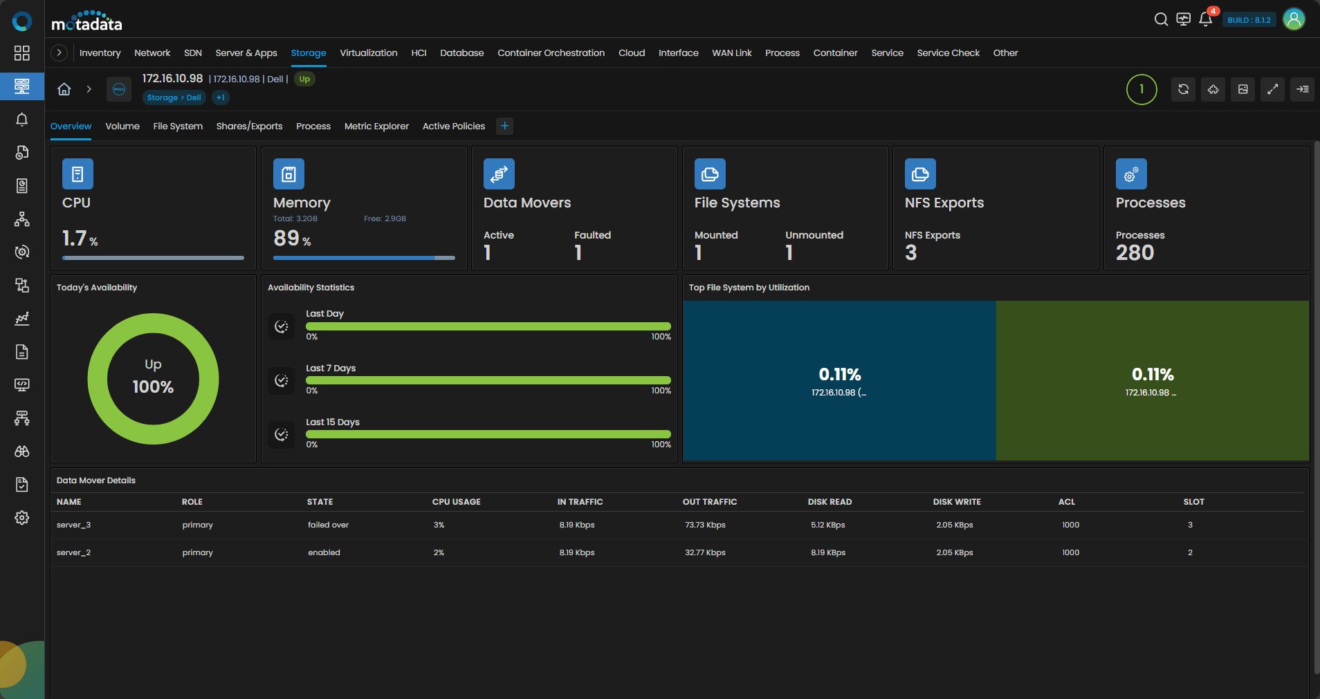 Motadata AIOps brings monitoring support for Dell VNX Storage. This new capability enables users to monitor and manage Dell VNX Storage systems directly within the platform, providing comprehensive visibility into storage performance and health.