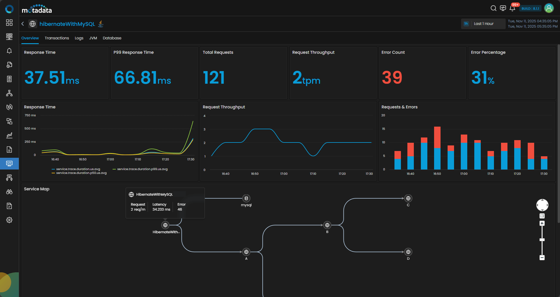 APM has been enhanced with improvements to the Overview, Database, and Exception tabs. These updates provide more comprehensive and intuitive insights into application performance metrics.