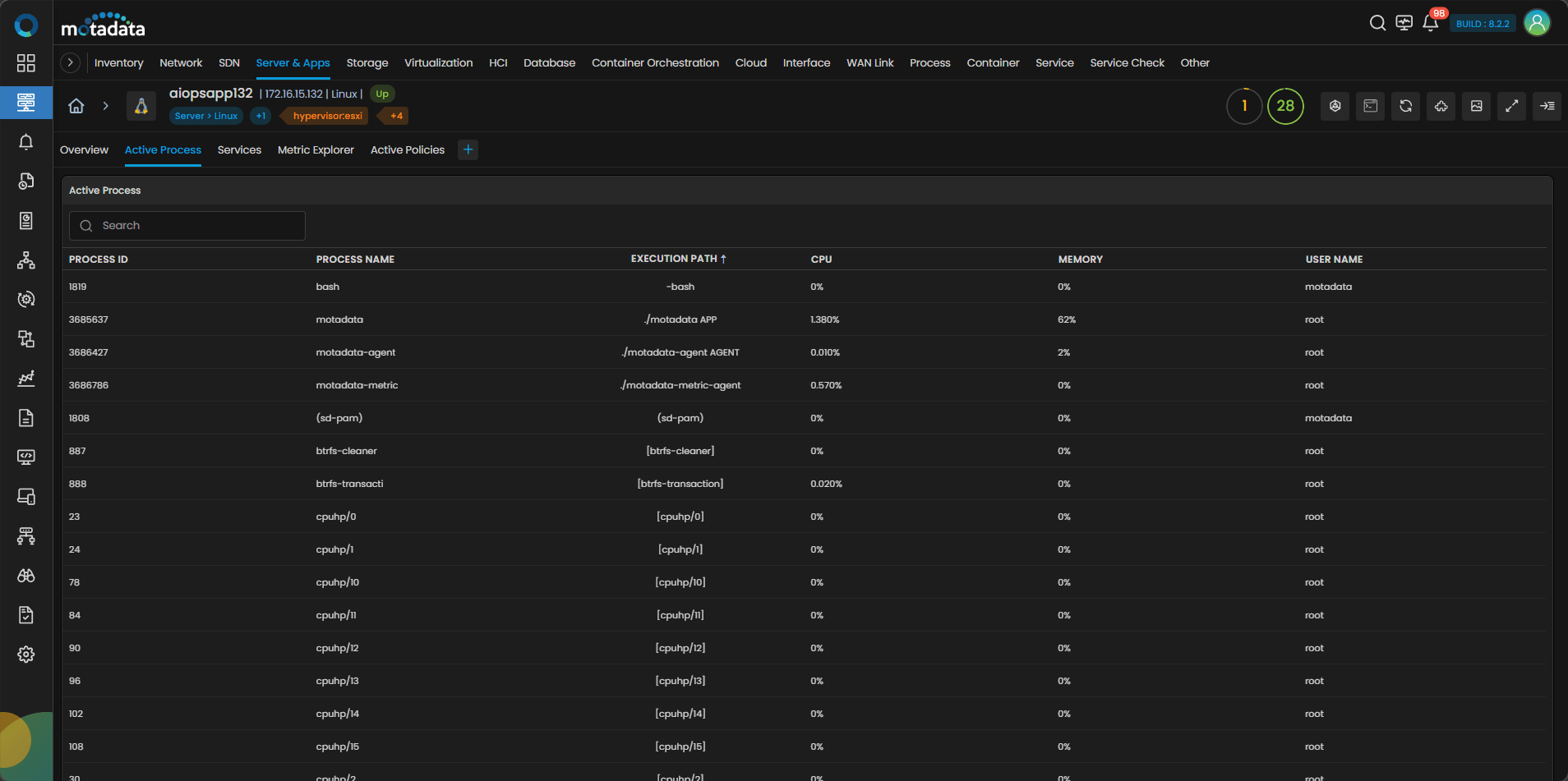 Active service and Process support has been implemented for both Windows and Linux systems. This new feature provides enhanced visibility into running services and processes, allowing for more effective system monitoring and management.