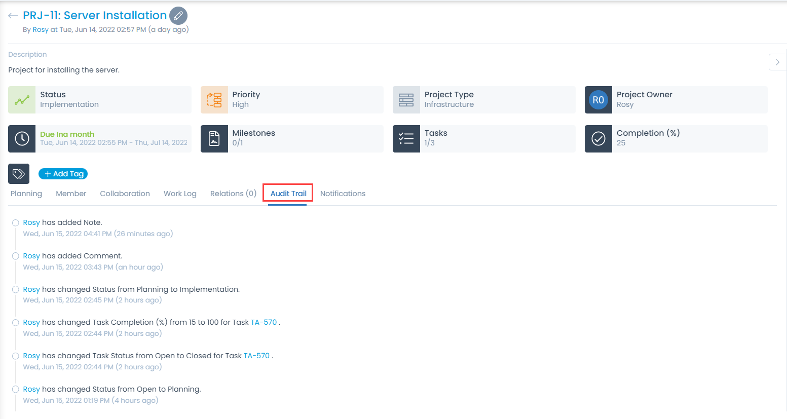 - Audit Trail: Log all activities related to the task, providing transparency and accountability.